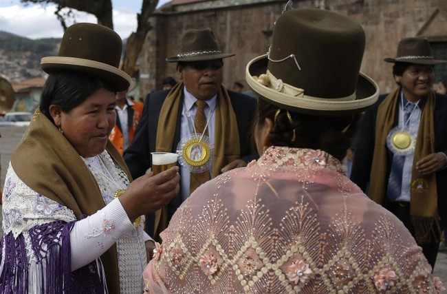 Dressed in traditional Andean ponchos and headdresses, the group performed a ceremony, and made predictions about the course of international relations, ongoing conflicts and the fate of world leaders.